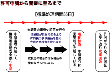 風俗営業法の分類は現在の風俗営業業界と若干、ズレていると思われますが、上記の分類で営業しようとするものがどれに近いか判断します。
